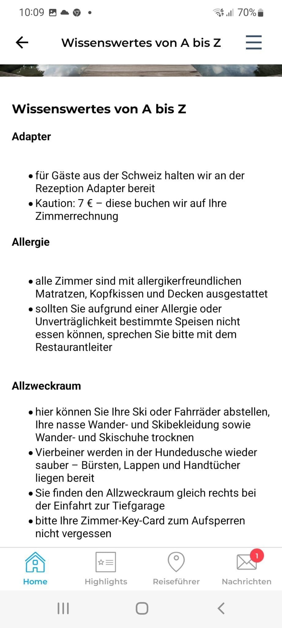 Hier wird eine Seite bereitgestellt, auf der von A bis Z geordnete Informationen stehen, die die Besucher für ihren Aufenthalt oder Ausflüge benötigen. In diesem Bereich können Texte, externe Links und Telefonnummern übersichtlich eingefügt und angeordnet werden. Um die wichtigsten Telefonnummern gleich griffbereit zu haben, könnte eine Vorlage mit den relevanten Nummern eingefügt werden, die einfach angepasst werden kann.